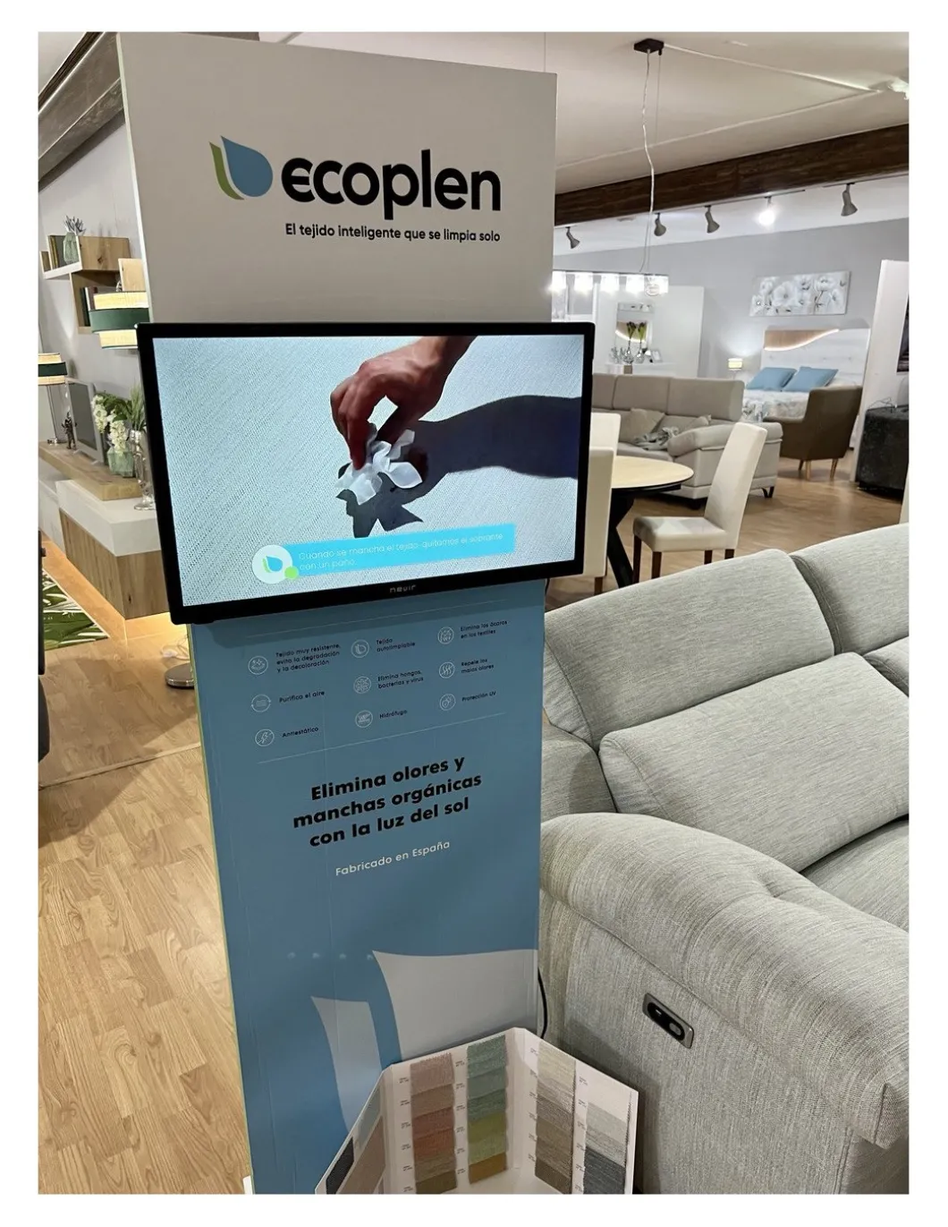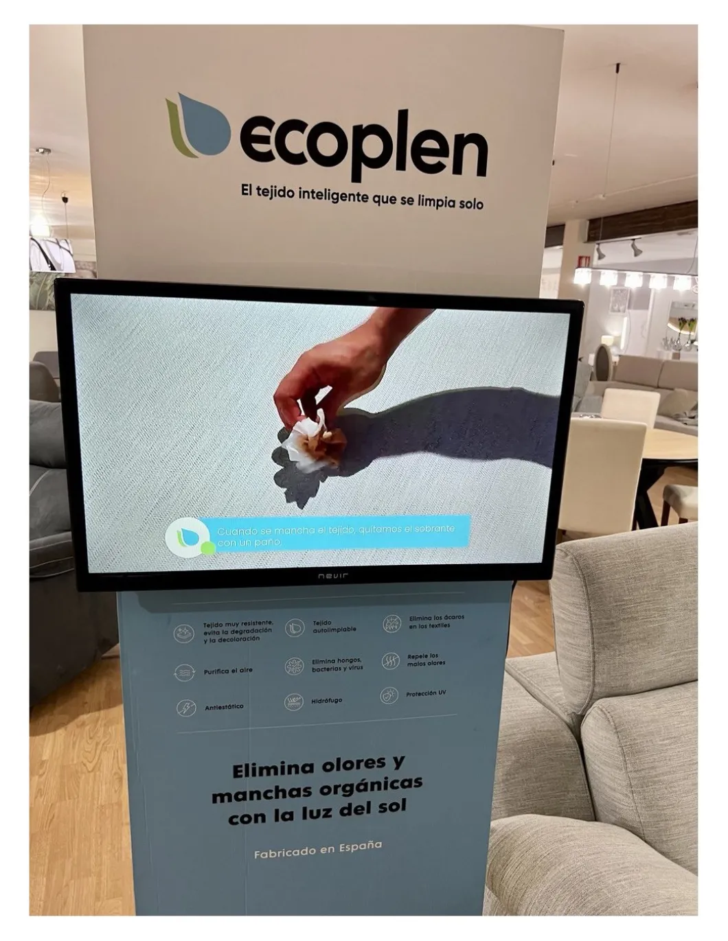 La ciencia y la tecnología se han unido para crear un tejido único en el mundo, el primero de sus características, capaz de autolimpiarse y de purificar el aire de su alrededor. Ecoplen es un tejido inteligente compuesto por nanopartículas TiO2 y tratado con biocidas, lo que le da la capacidad de eliminar olores, suciedad, y manchas orgánicas solo con la luz solar. En el caso que la suciedad o la mancha no tenga un origen orgánico, un paño mojado será suficiente para restablecer la limpieza del tejido.
