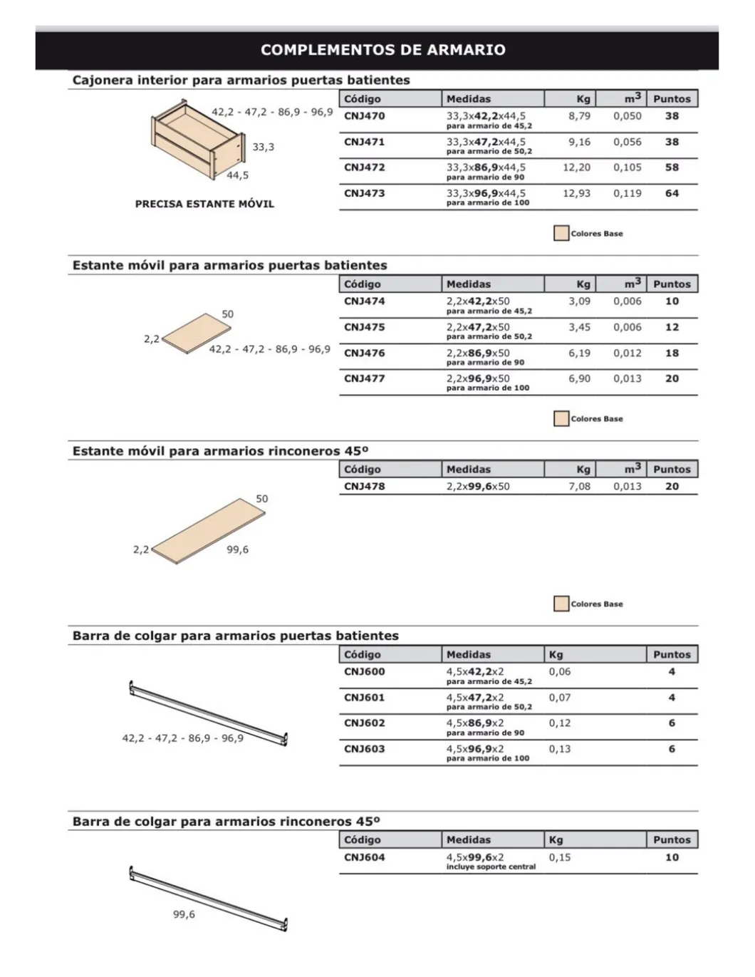 Posibilidad de otros acabados según carta de colores.