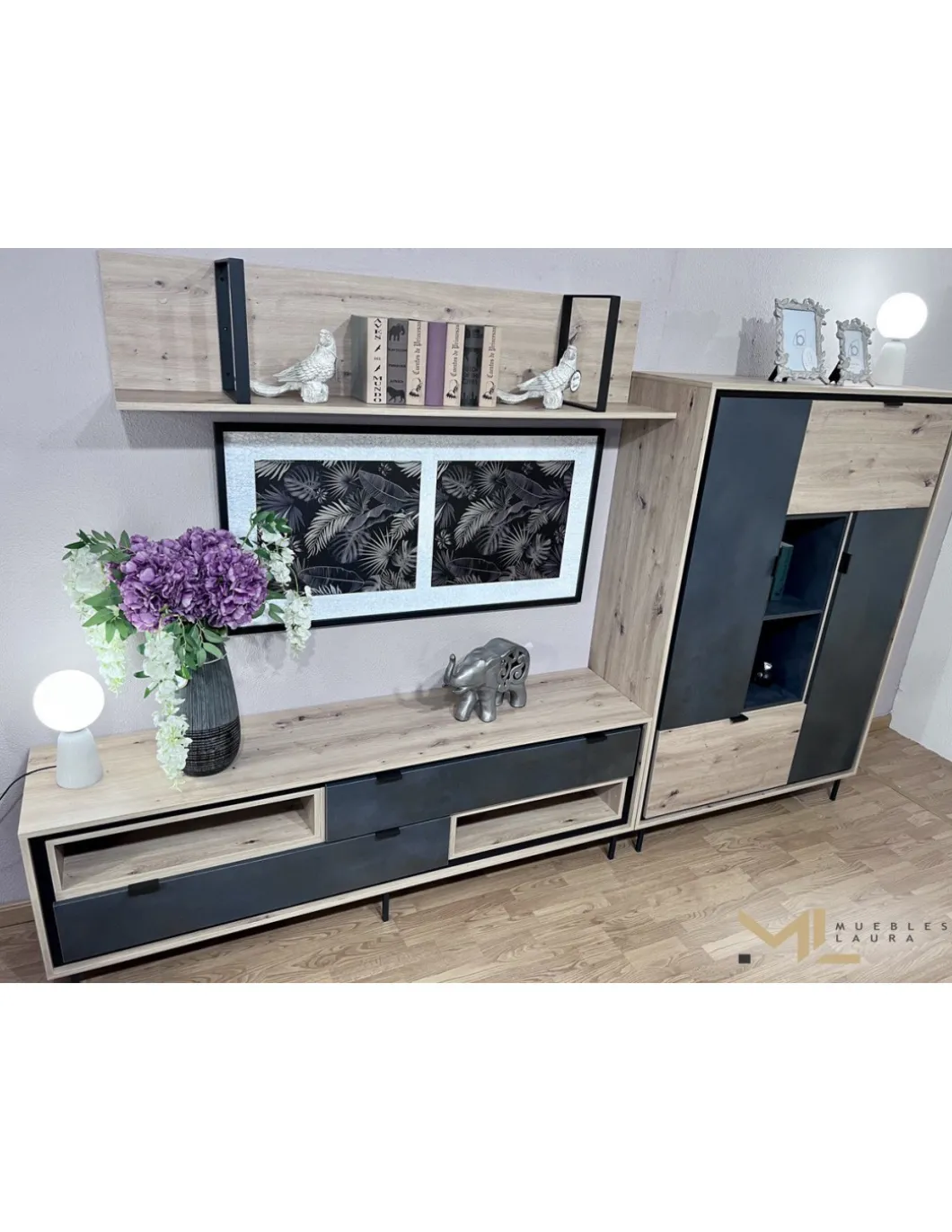 Composición comedor 2.90m compuesta por Modulo T.V + Vajillero.