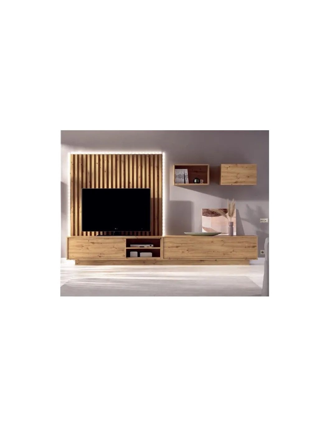 COMPOSICIÓN 06 Comedor 3.00m moderno con panel alistonado, COLOR EN NORDIC.