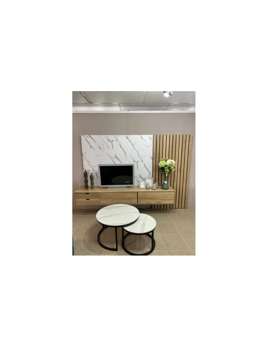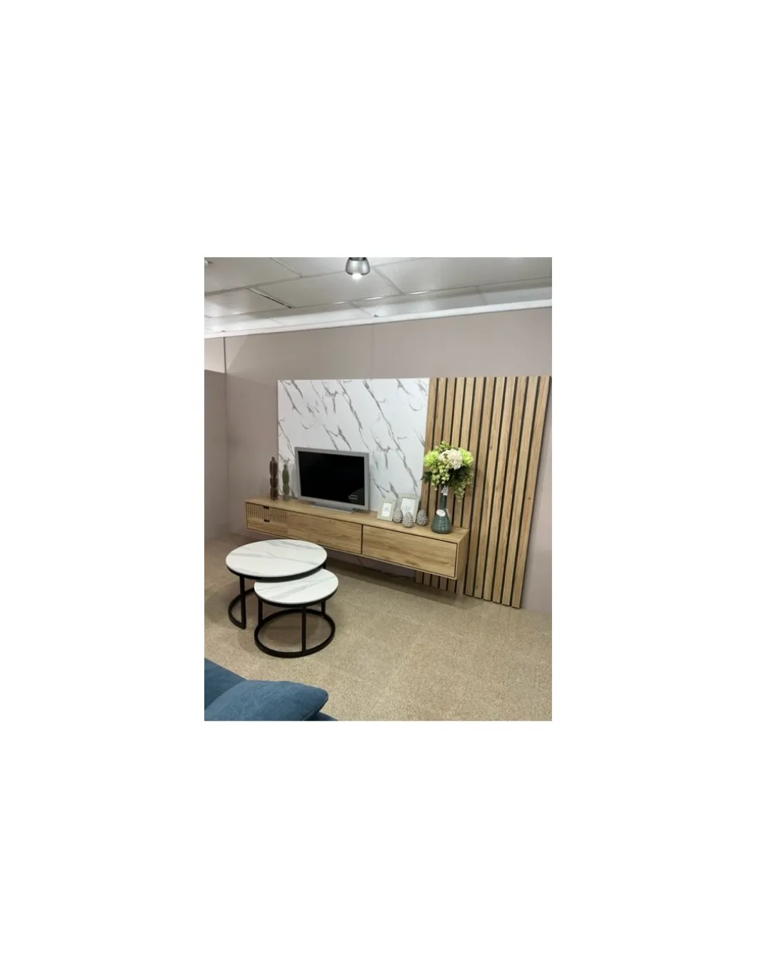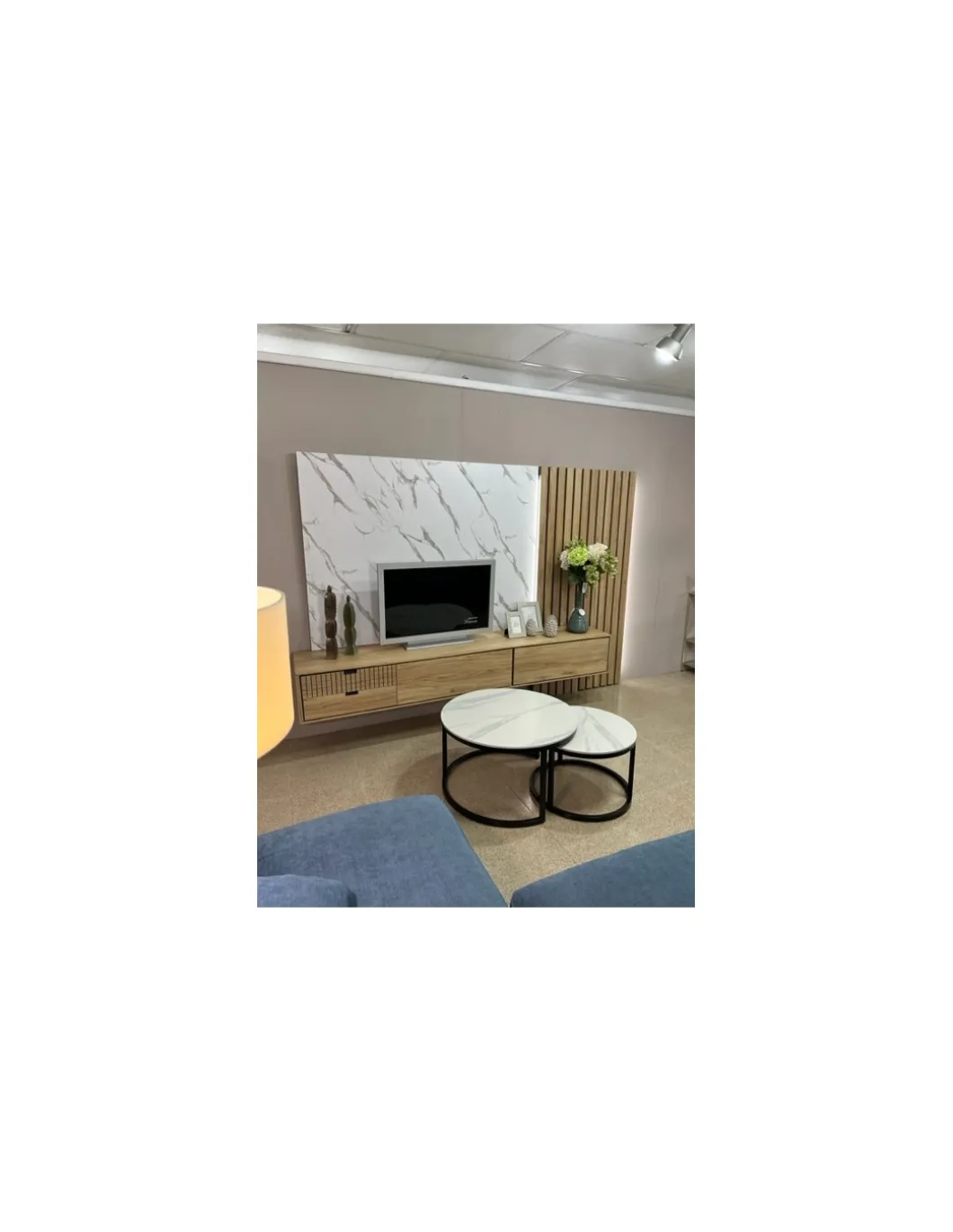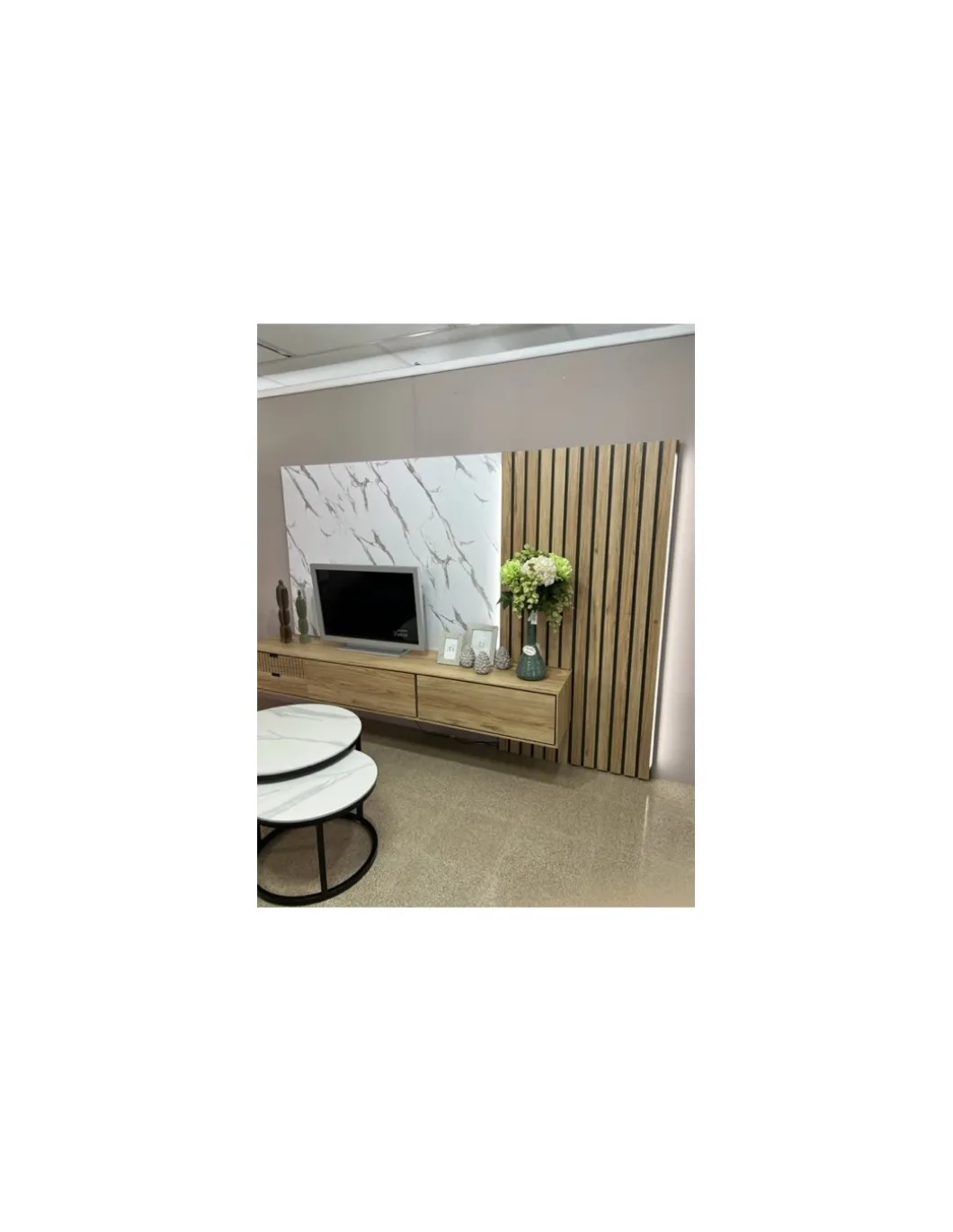 COMPOSICON DE COMEDOR ROBLE ALABAMA-GRAFITO PORO-MARMOL GRIS 297X200 CON LUZ LED.