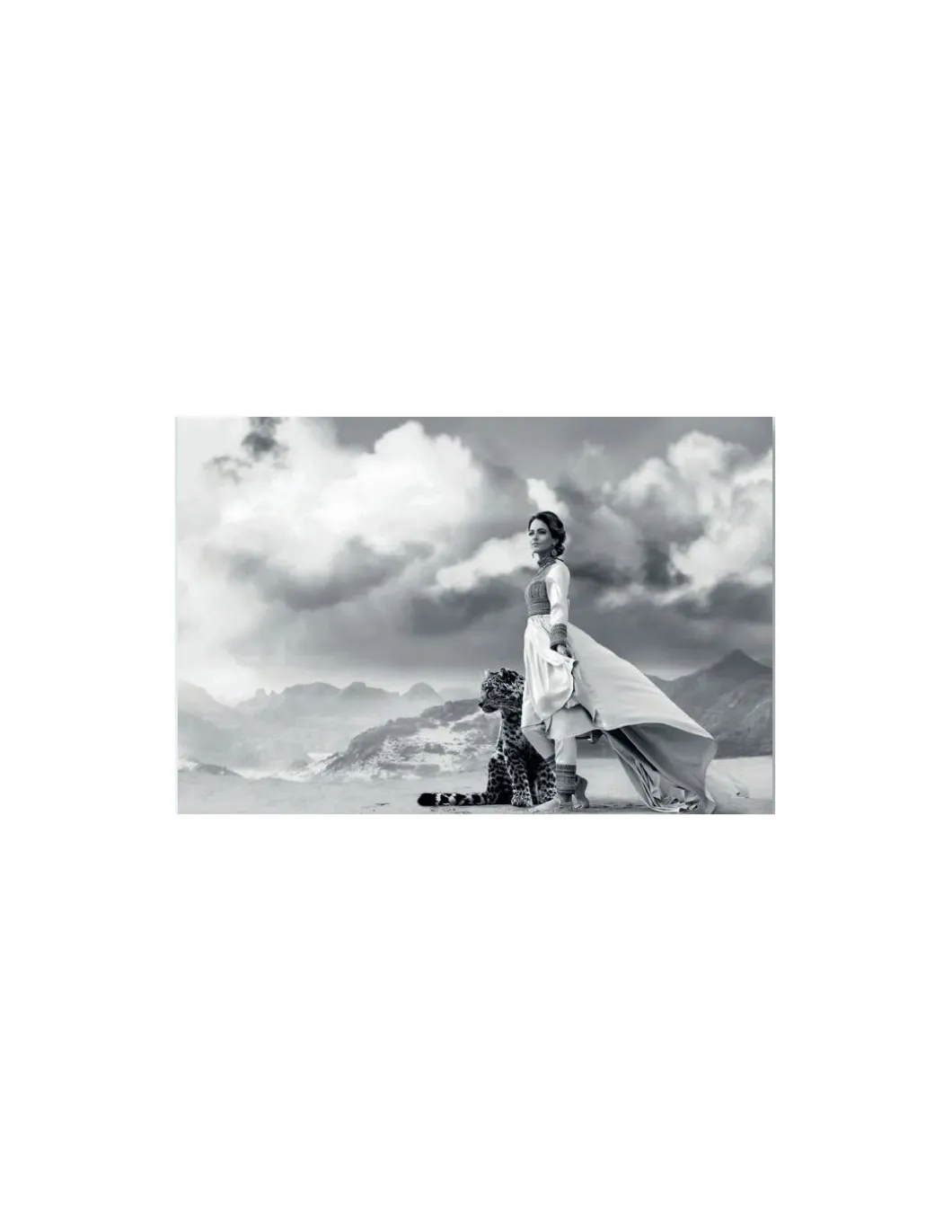 FOTO CRISTAL MUJER CON LEOPARDO EN BLANCO Y NEGRO