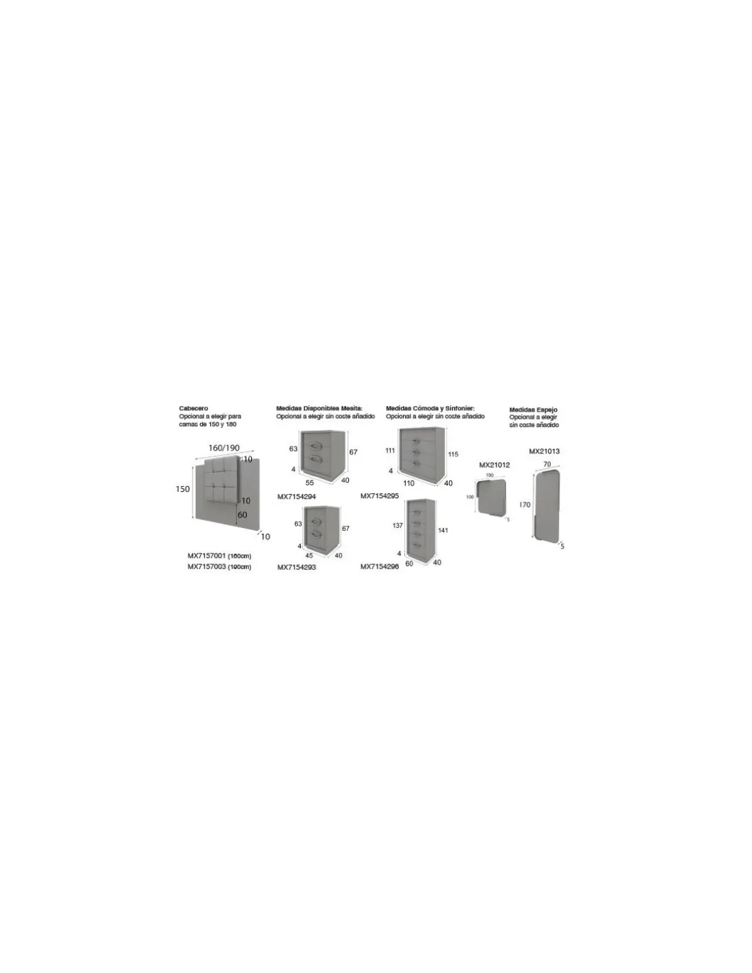 Dormitorio con 1 cabezal, 2 mesitas y a elegir entre conjunto de cómoda o sinfonier en el mismo precio.