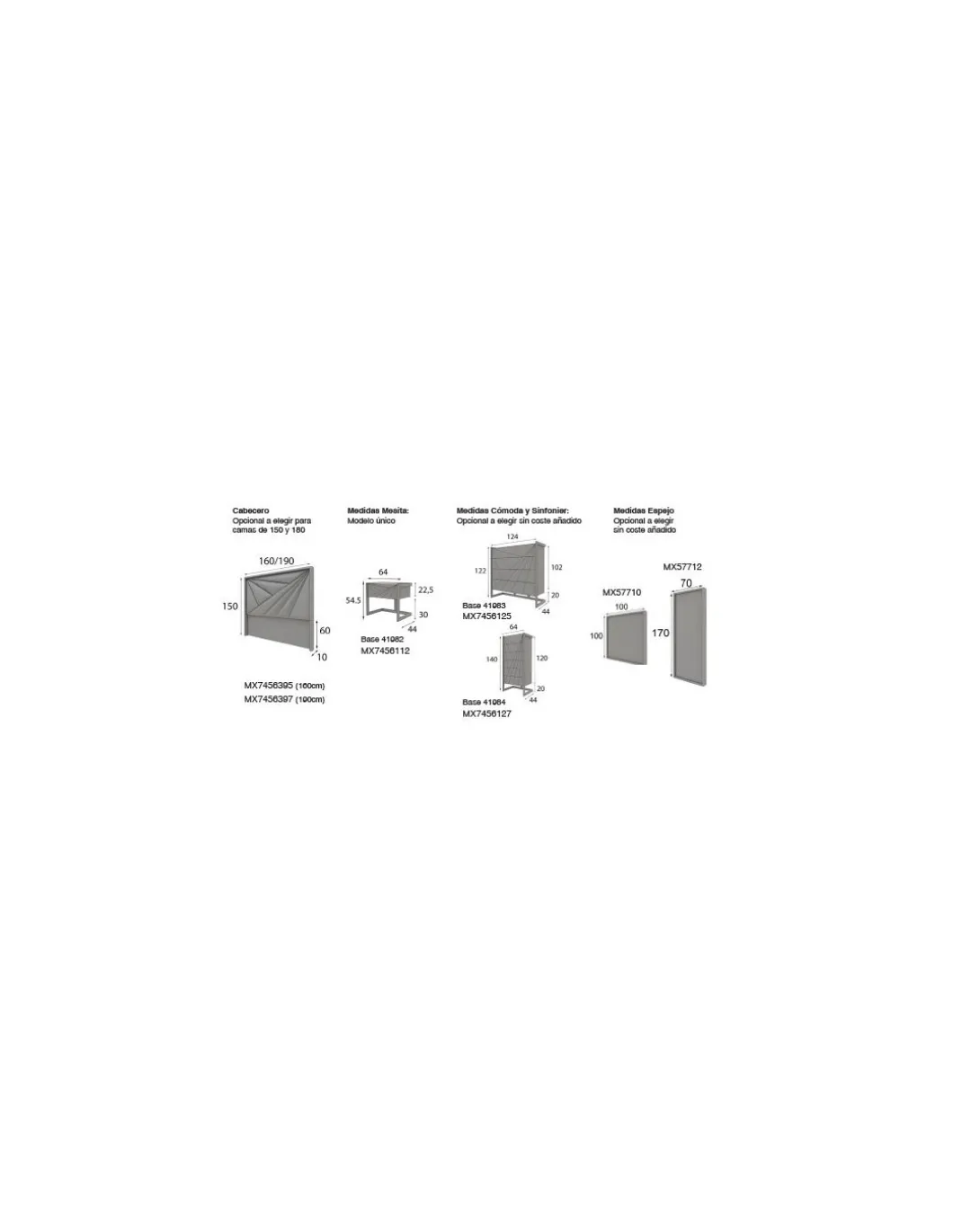 Dormitorio con 1 cabezal, 2 mesitas y a elegir entre conjunto de cómoda o sinfonier en el mismo precio.