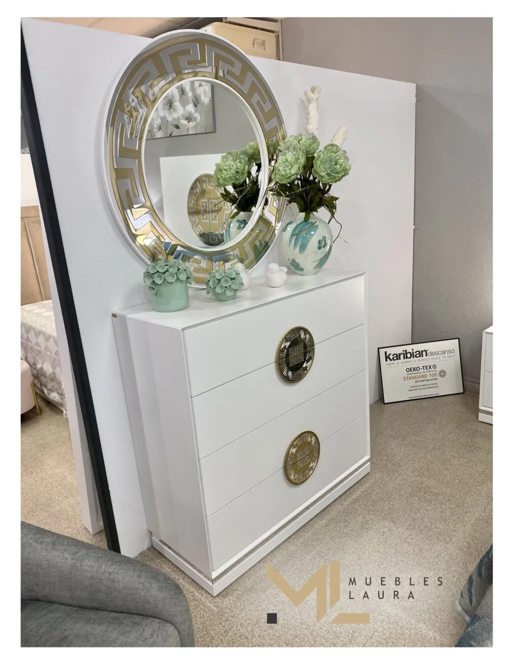 ACABADO LACADO BLANCO , DETALLES CROMO Y ORO.