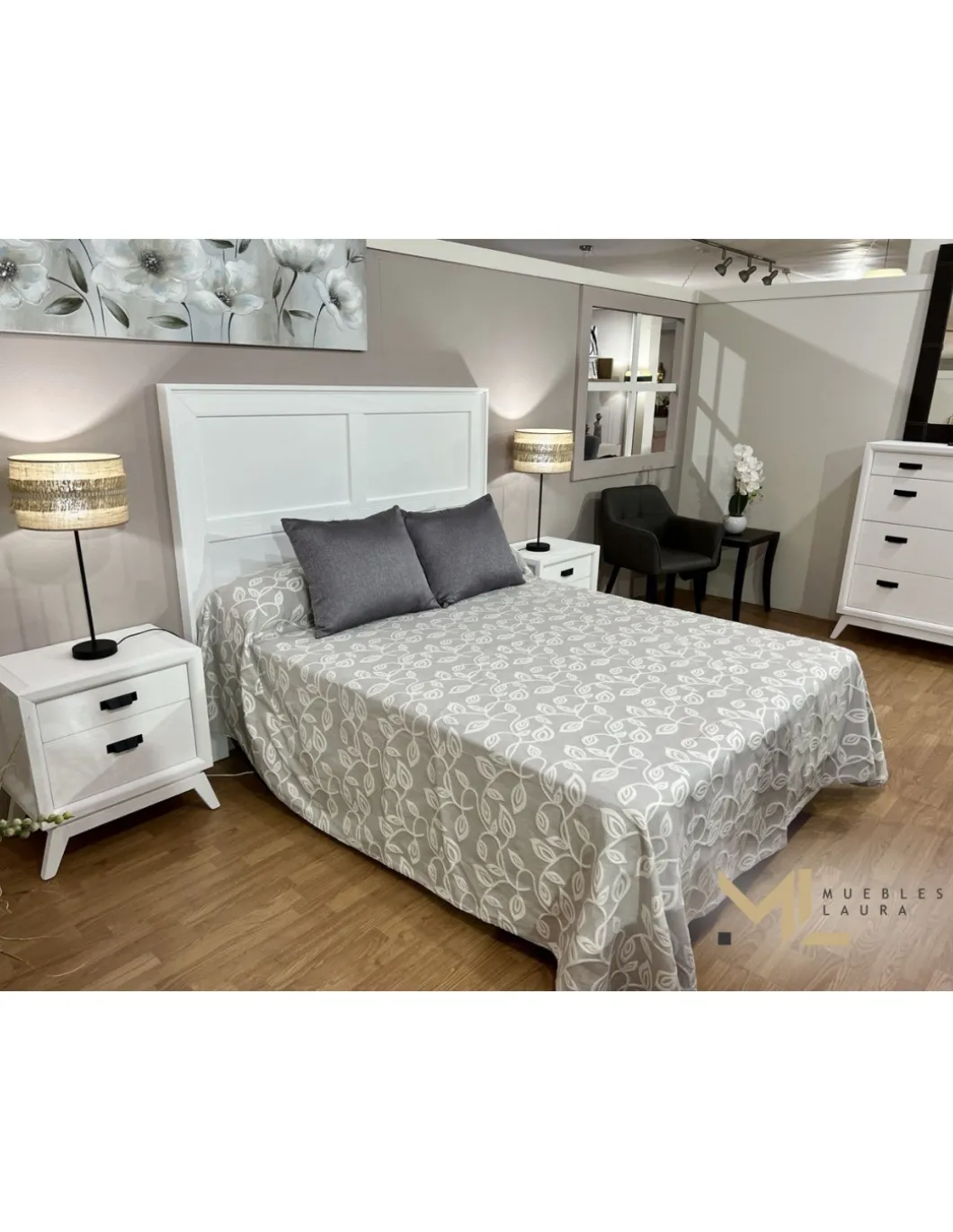 Dormitorio de Matrimonio Compuesto por Cabezal de 150 y 2 mesitas de 58cm + comoda de 102m.