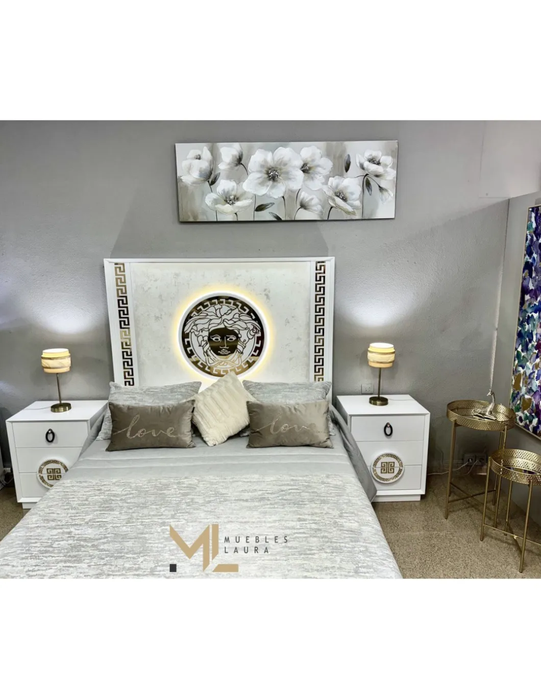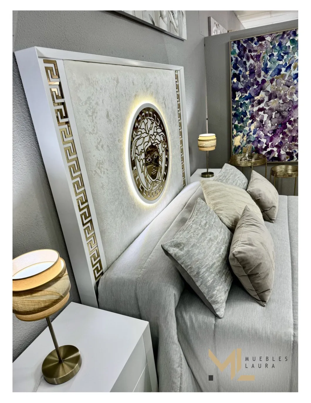 Dormitorio matrimonio compuesto por cabezal versace luz led para cama de 150 ,