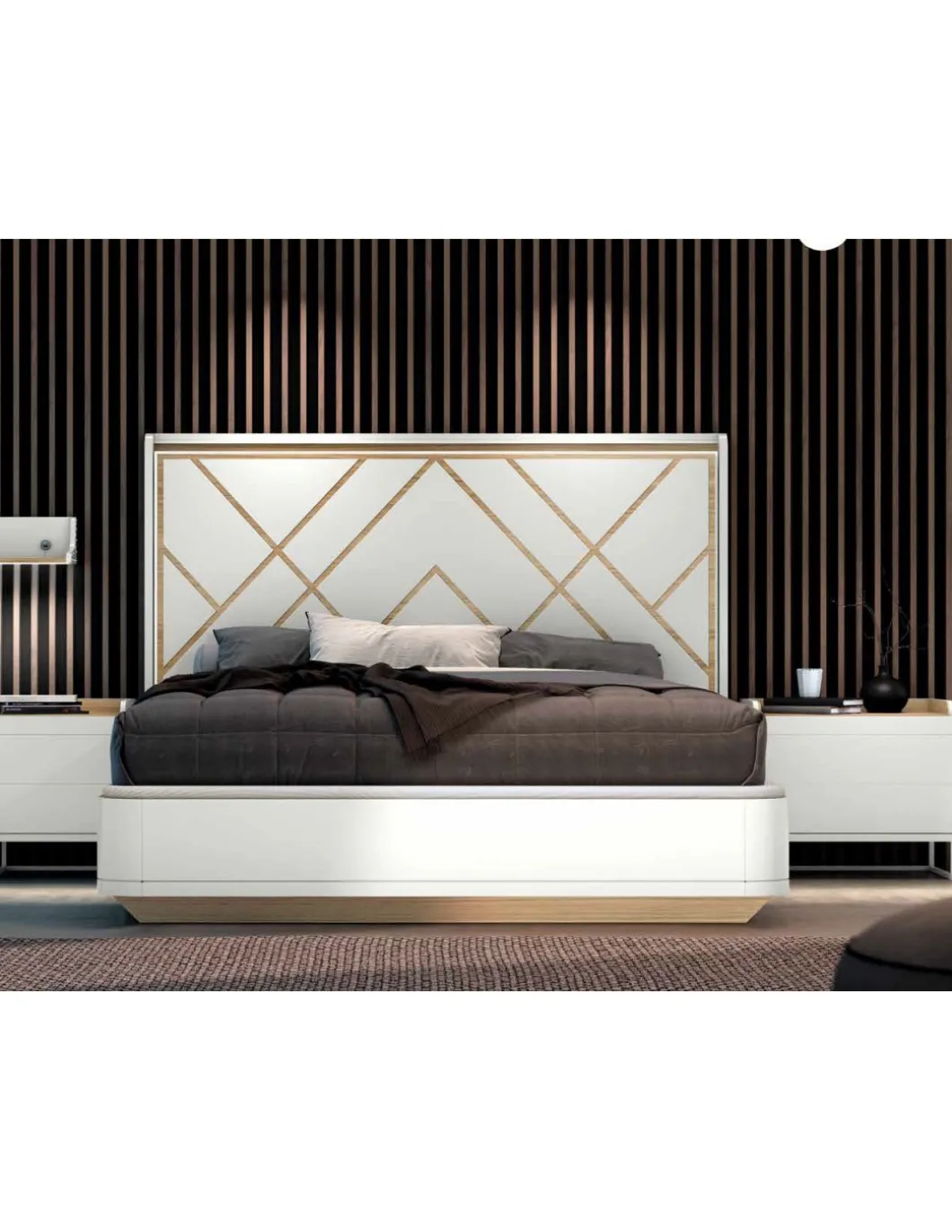 CABEZAL GALAXY-M LACADO para cama de 150 + 2 mesitas con pata metálica.