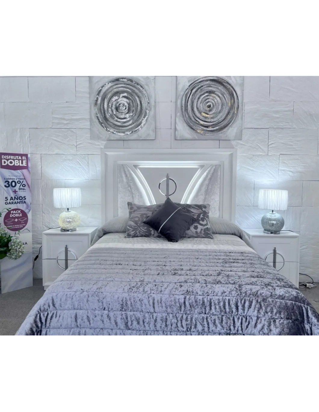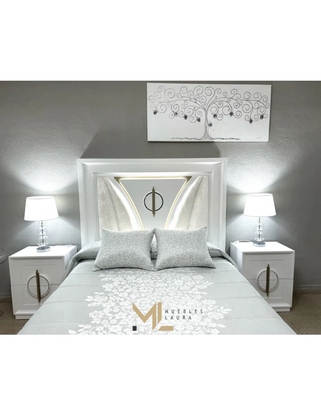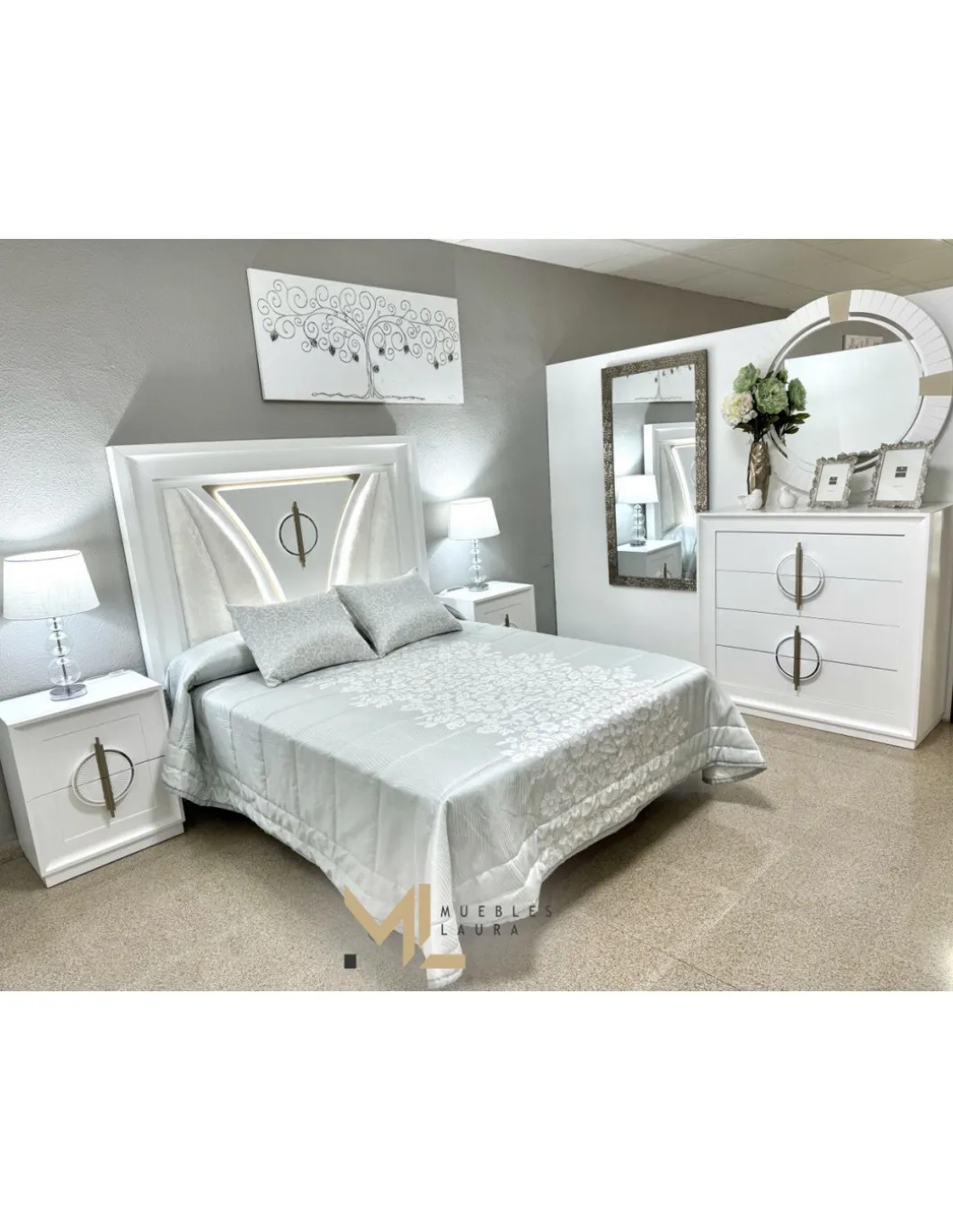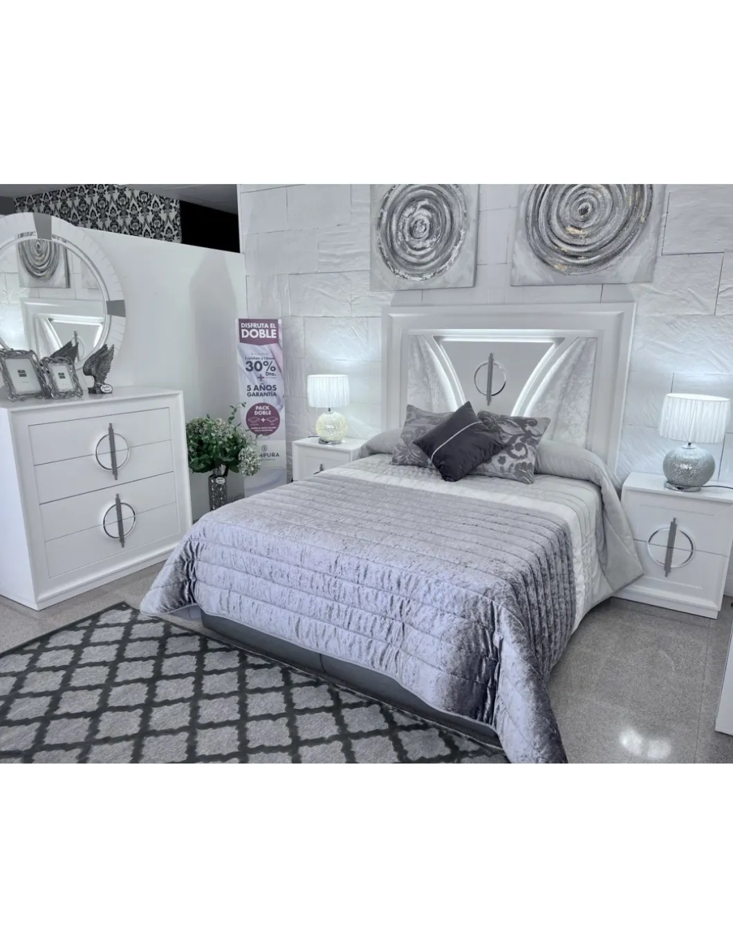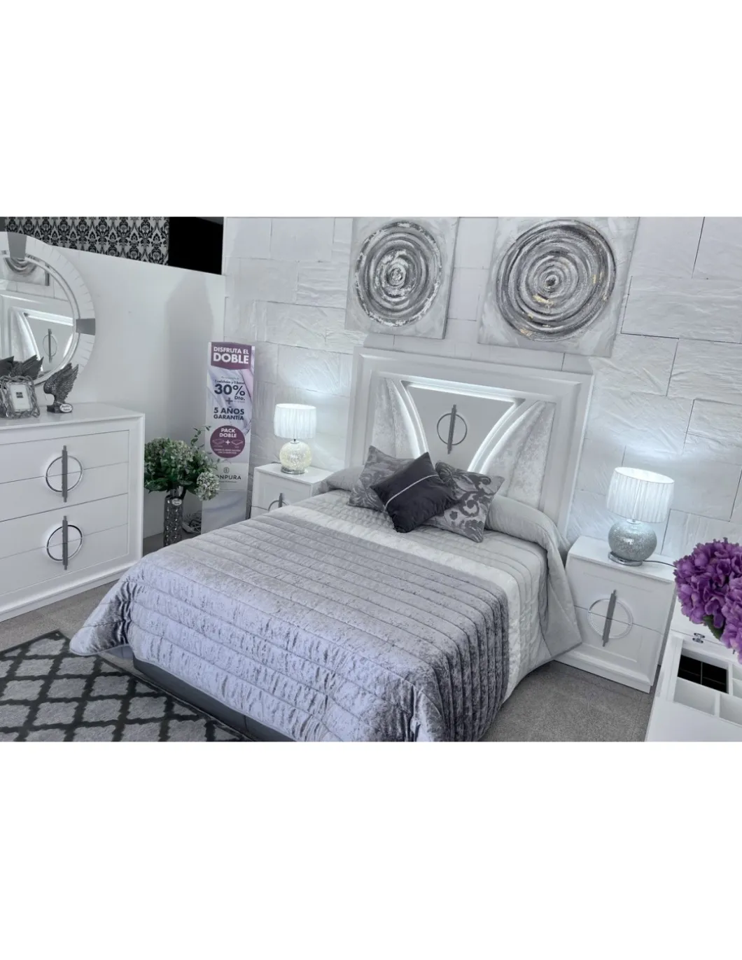 DORMITORIO MATRIMONIO COMPUESTO POR CABEZAL 150, 2 MESITAS + CÓMODA Y ESPEJO.
