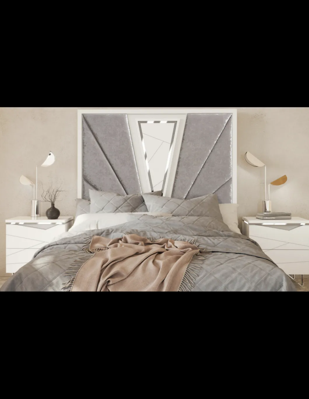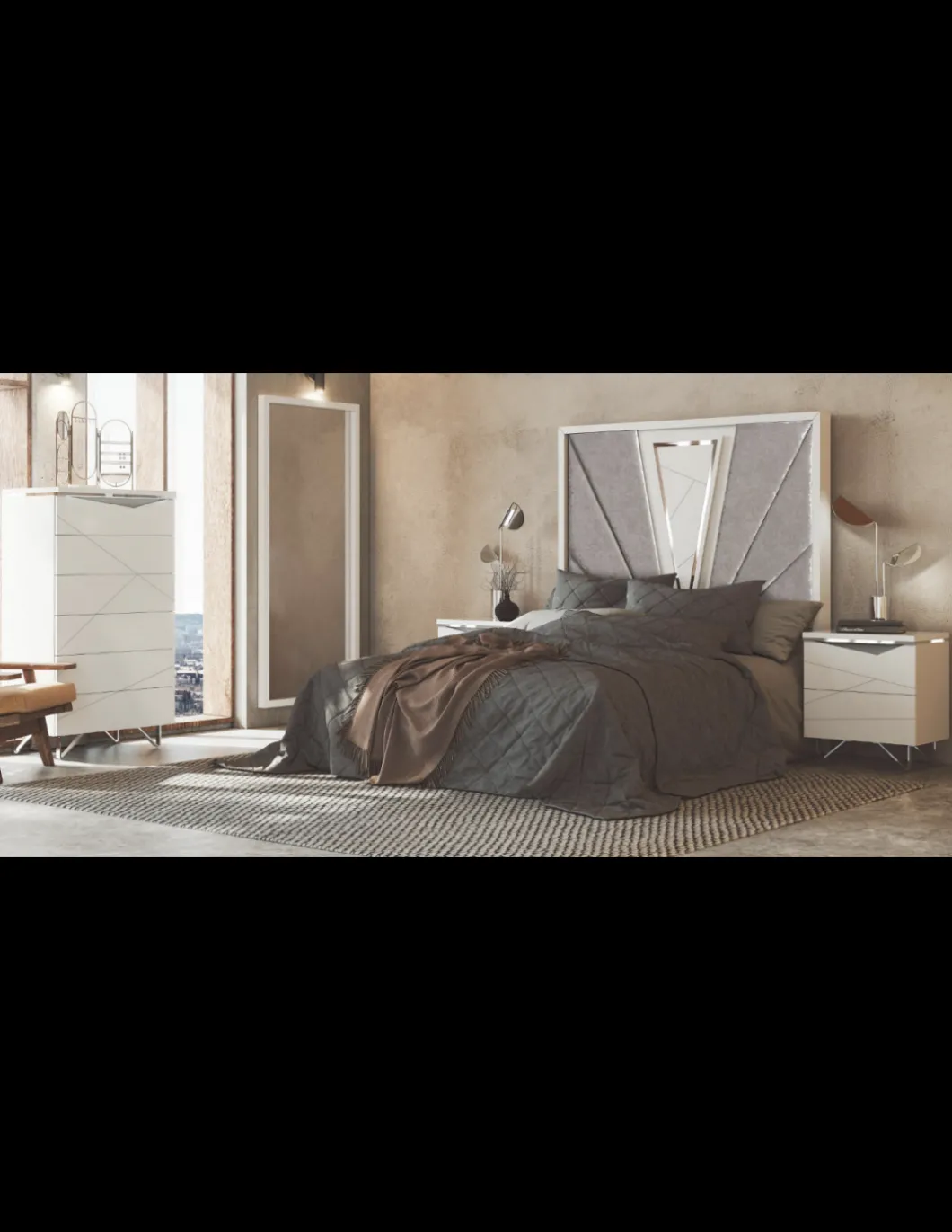 DORMITORIO COMPUESTO POR CABEZAL 2 MESITAS Y COMODA/SINFONIER CON ESPEJO.