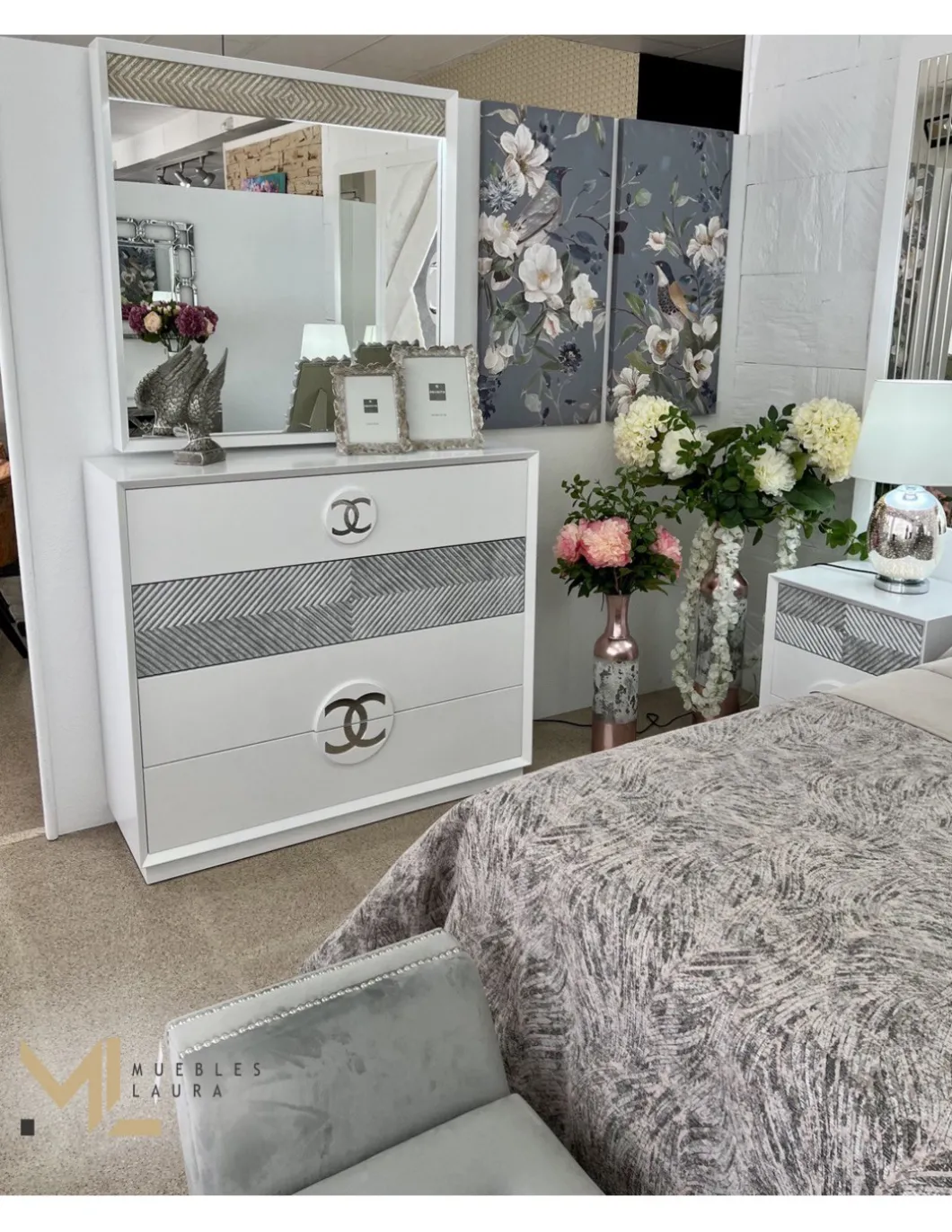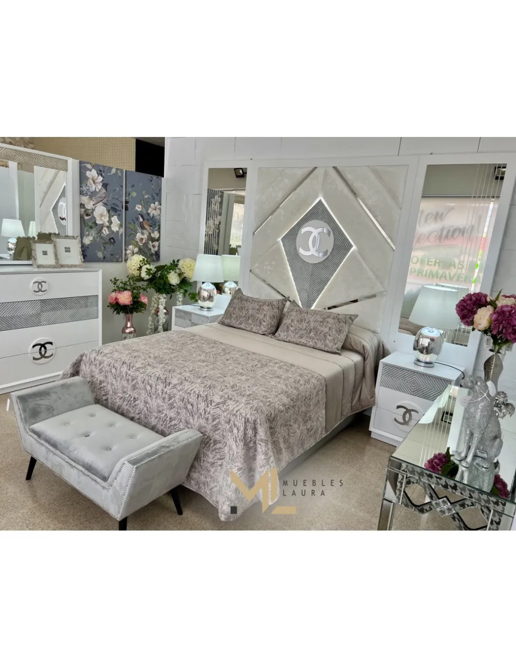 Dormitorio matrimonio para cama de 150 en medida de 305*225m + 2 mesita + comoda y espejo.