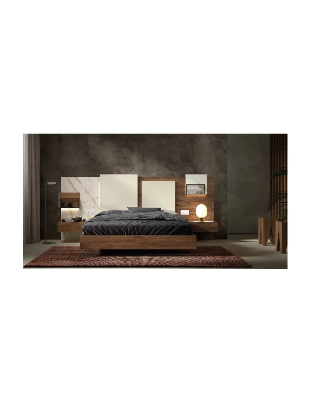 Dormitorio de Matrimonio, cabezal para cama de 150 y mesitas suspendidas.