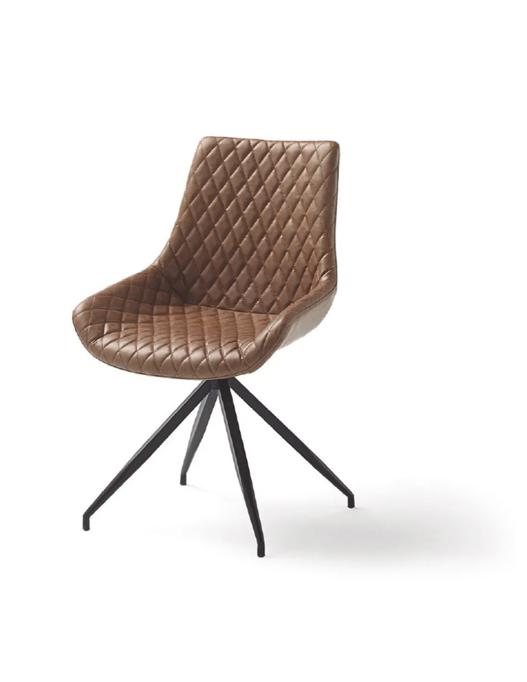 Silla giratoria acolchada Rombos en Ecopiel Marrón o combinada en Tejido y Ecopiel.