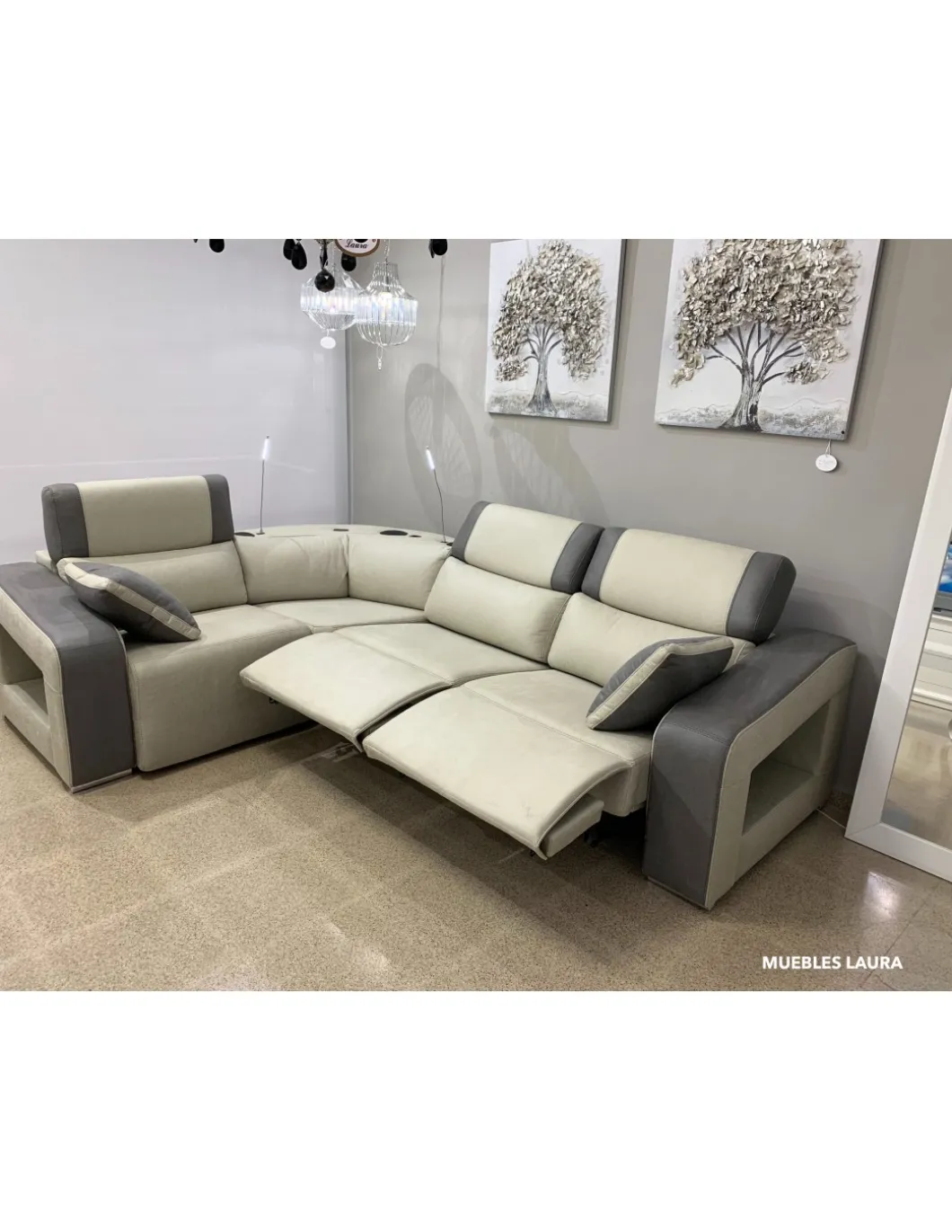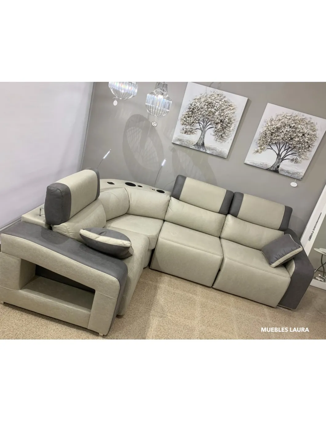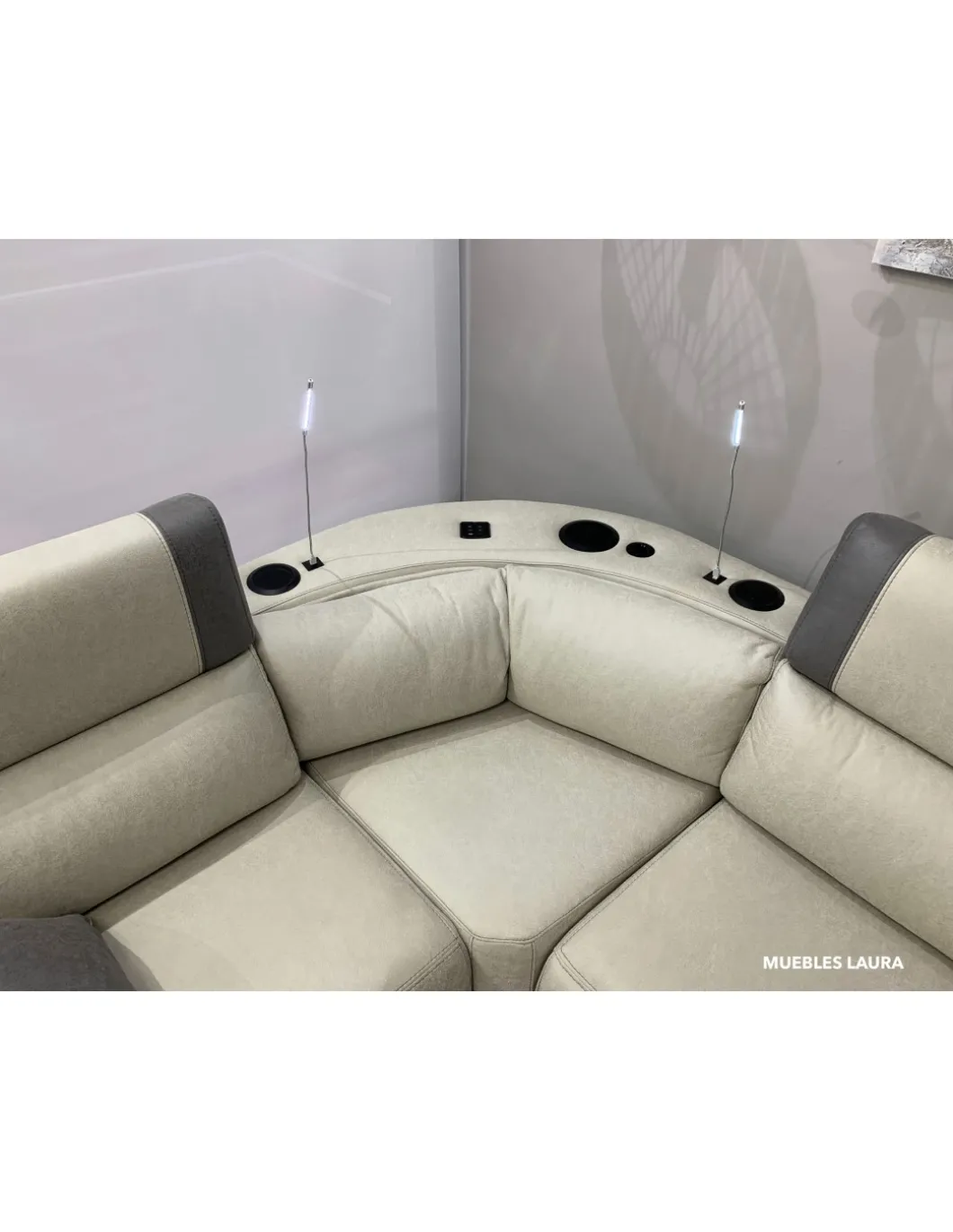 SOFÁ RINCONERA CON 2 ASIENTOS RELAX ELÉCTRICOS + MODULO RINCON + MODULO DESLIZANTE (2 USB CON LUZ+EQUIPO BLUETOOTH) de 2.85X2.06 metros.