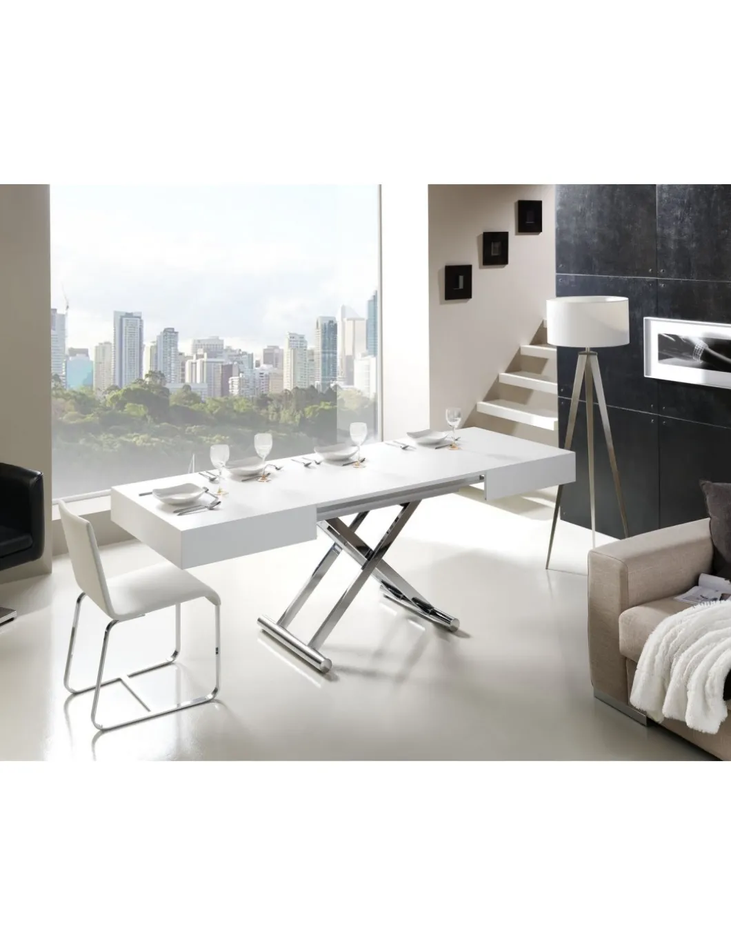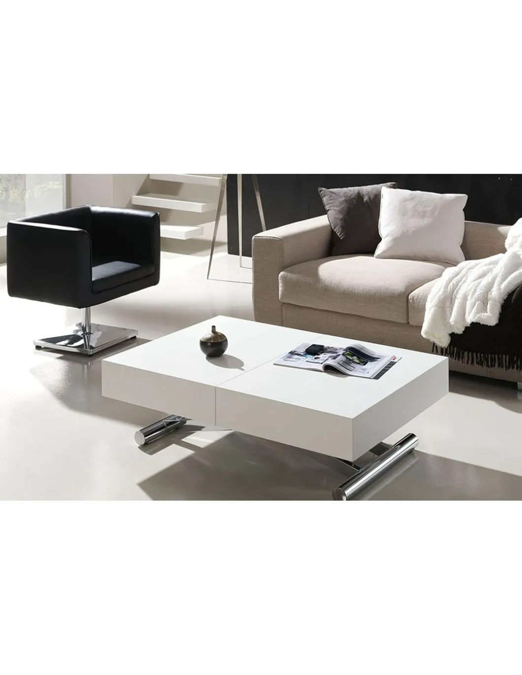 Mesa de centro «Activa». Un modelo funcional y sofisticado regulable en altura y apertura, donde mesa de centro y comedor se funden en una, para optimizar el espacio.