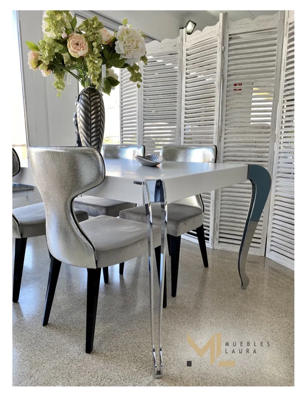 Mesa comedor 180×90, pata isabelina cromada.