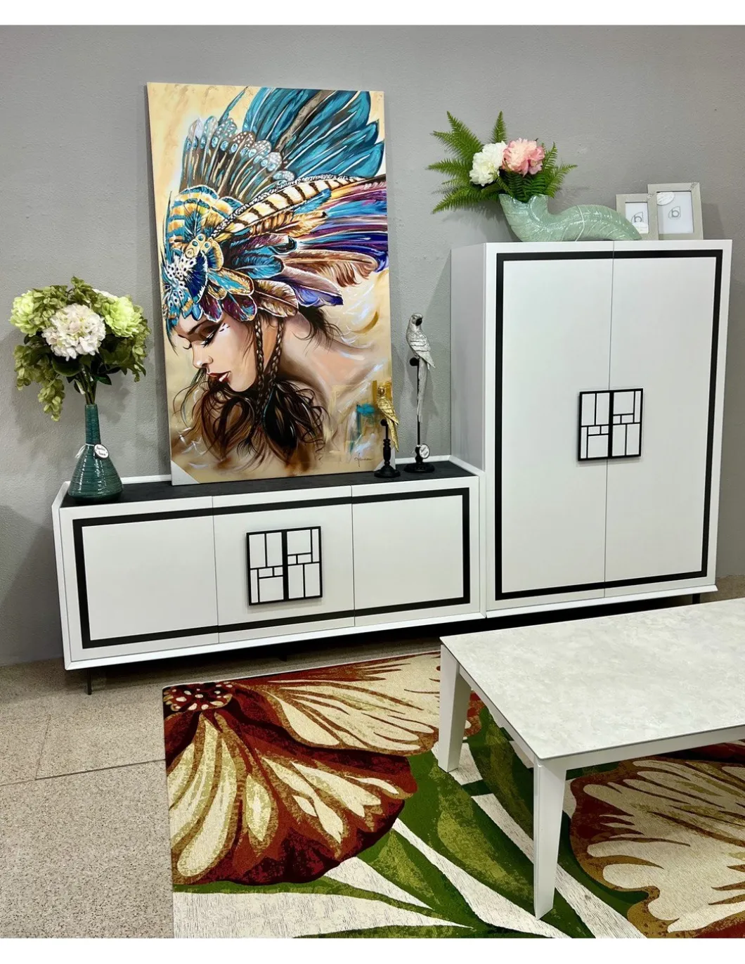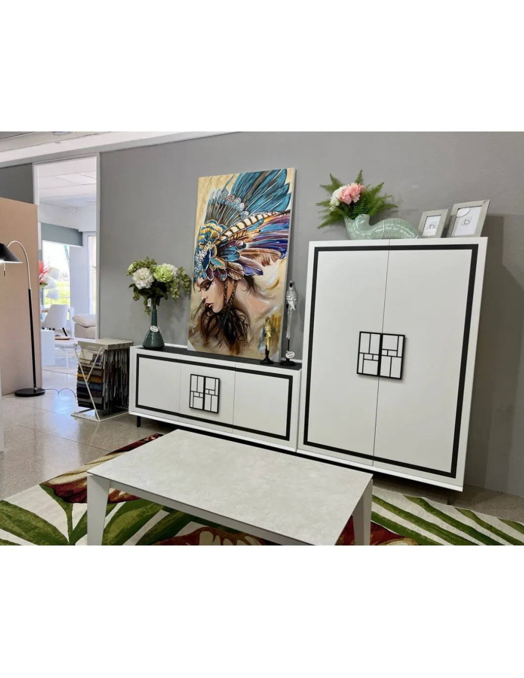 ACABADO EN BLANCO LACADO MATE, TAPA EN PIZARRA Y DETALLES EN GRAFITO.