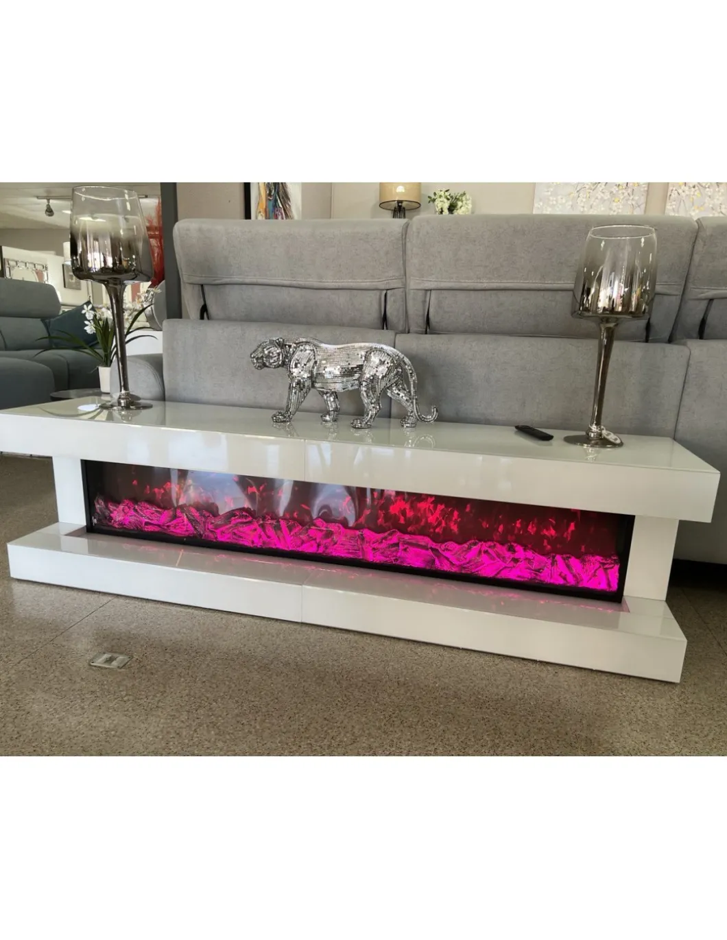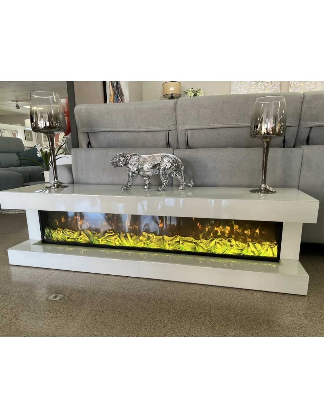 Acabado en lacado blanco y cristal extra blanco.