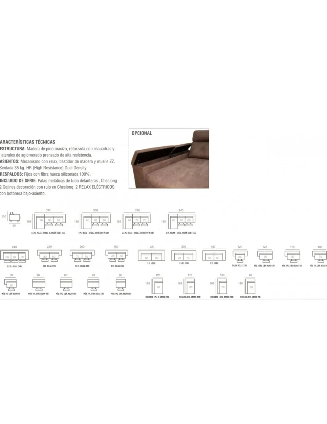 INCLUIDO DE SERIE: Patas metálicas de tubo delanteras , Cheslong