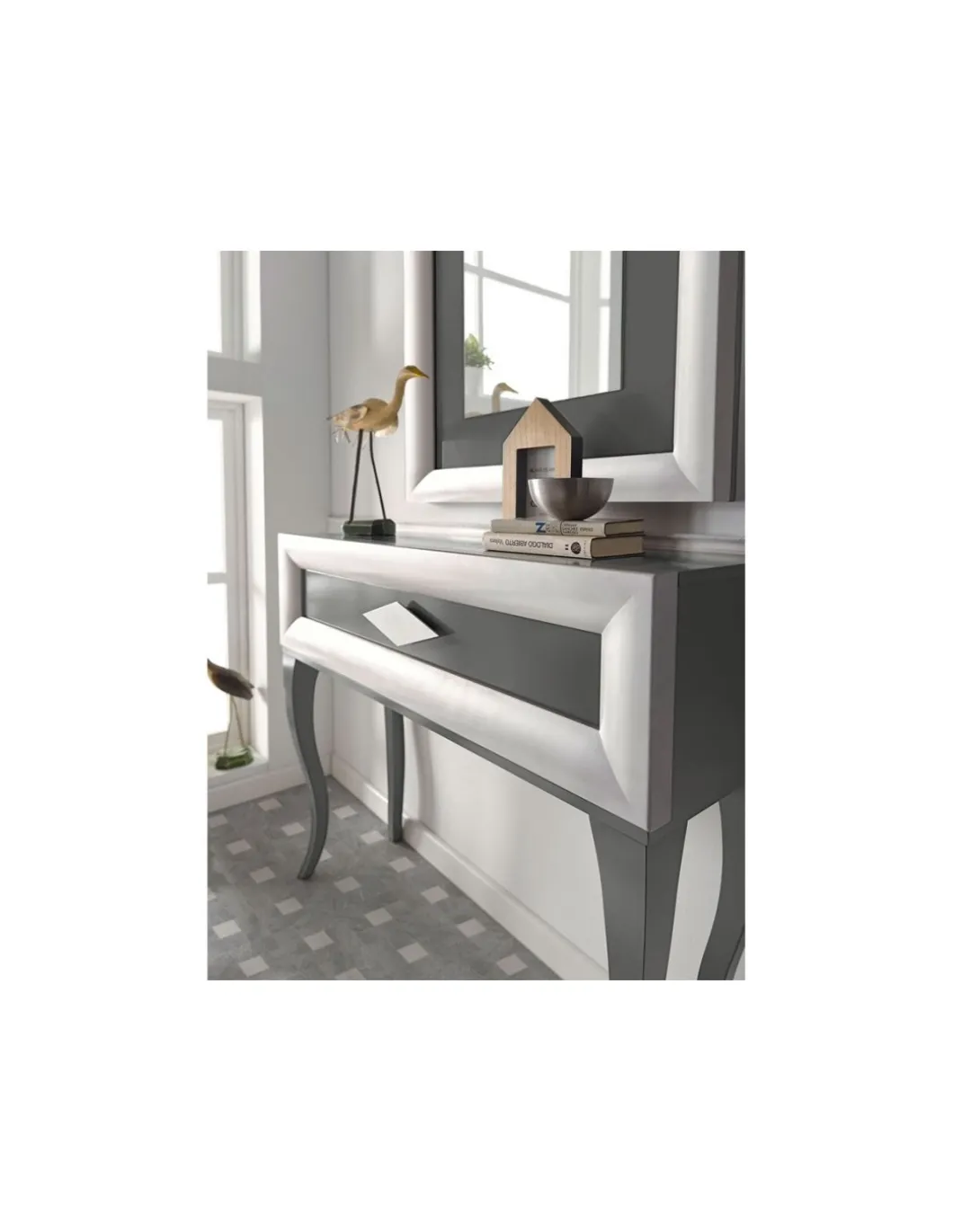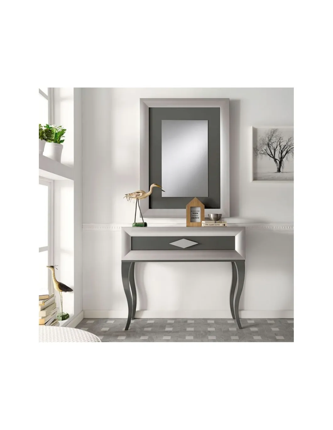 Recibidor lacado compuesto por consola y espejo.