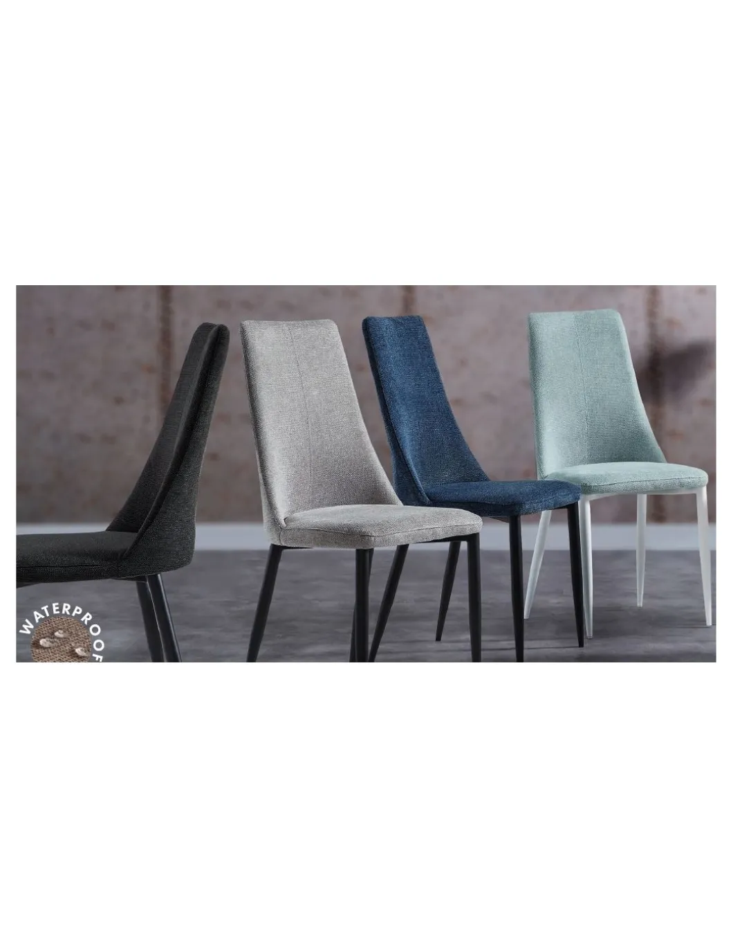 Silla moderna de comedor tapizada en TEJIDO BELFAST de fácil limpieza.