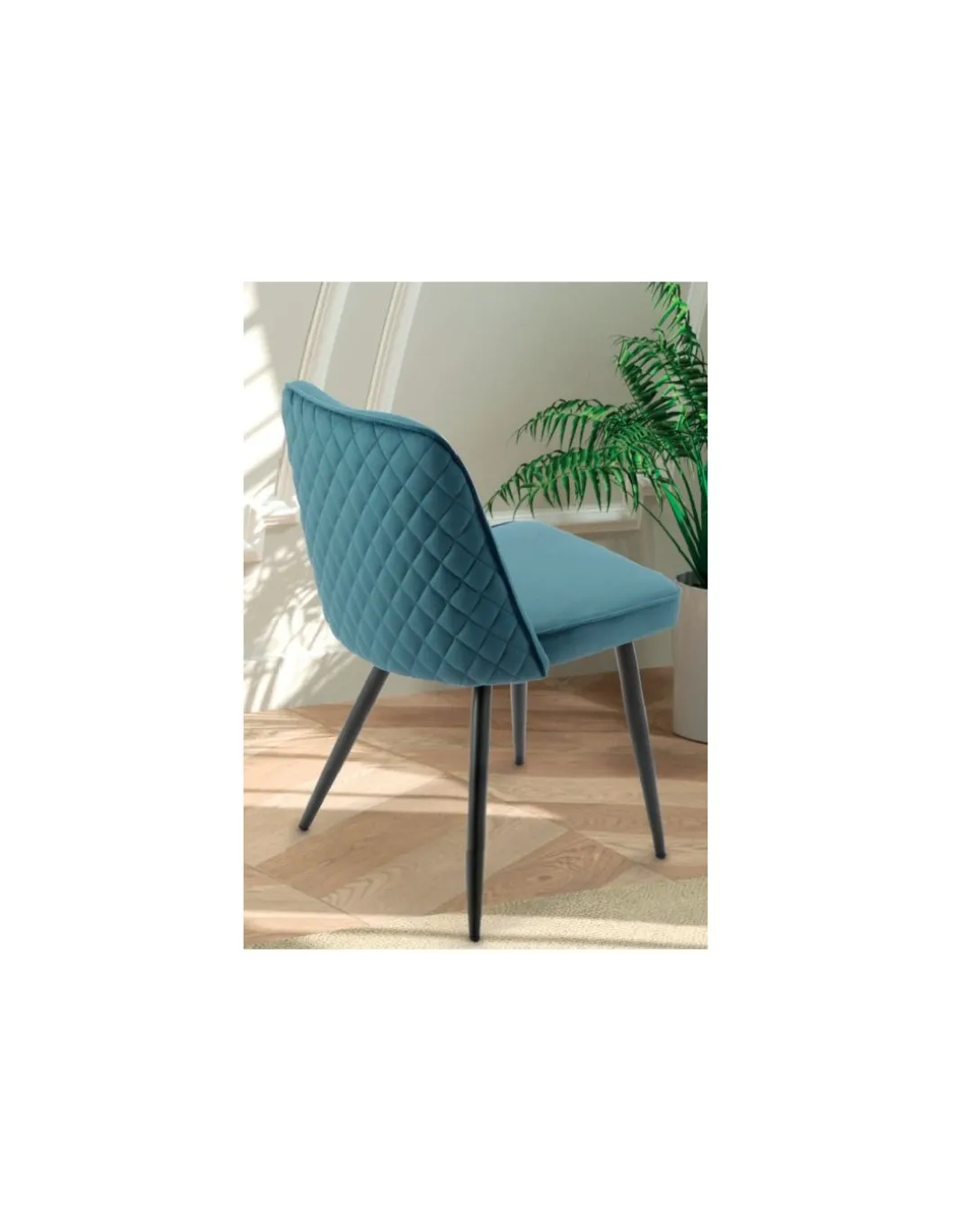 Silla Tania, tapizada en terciopelo velvet, patas metálicas en negro.