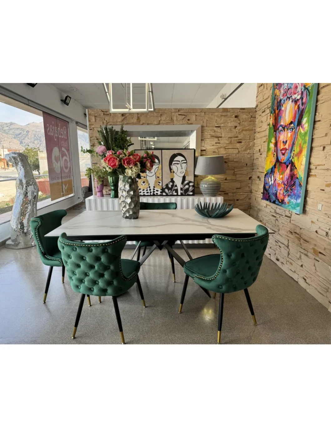 Tapizado a elegir entre VERDE, BEIGE, MOSTAZA, ROSA.