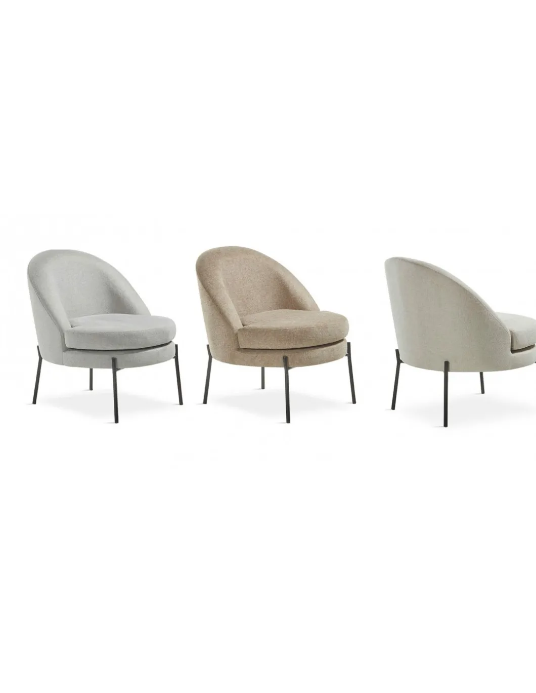 BUTACA EN PATA METÁLICA COLOR NEGRO Y EN TELA GRIS BEIGE O TOPO