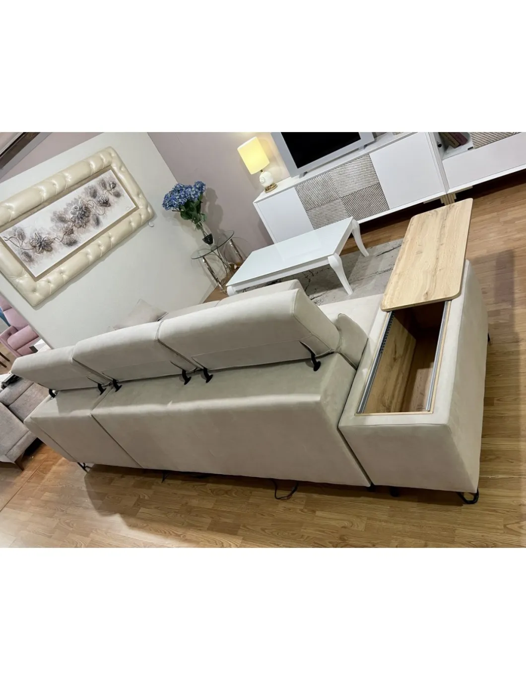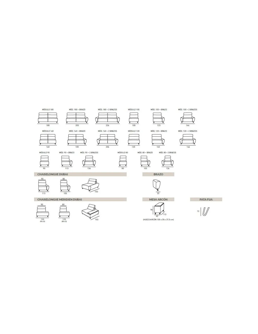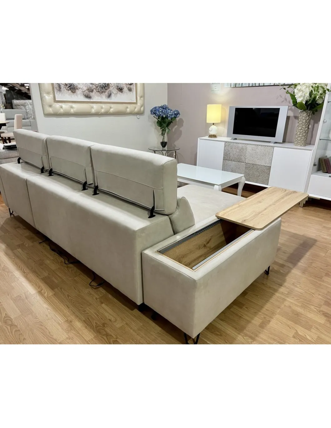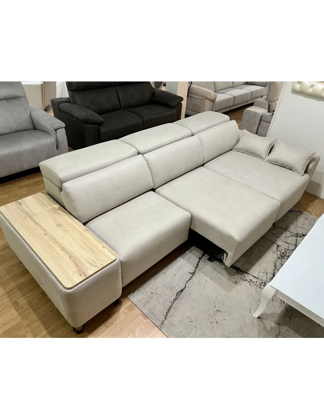 SOFÁ MODELO DUBAI CHAISLONGUE 2.82M, DESLIZANTE MOTORIZADO APP. + MESA ARCÓN.