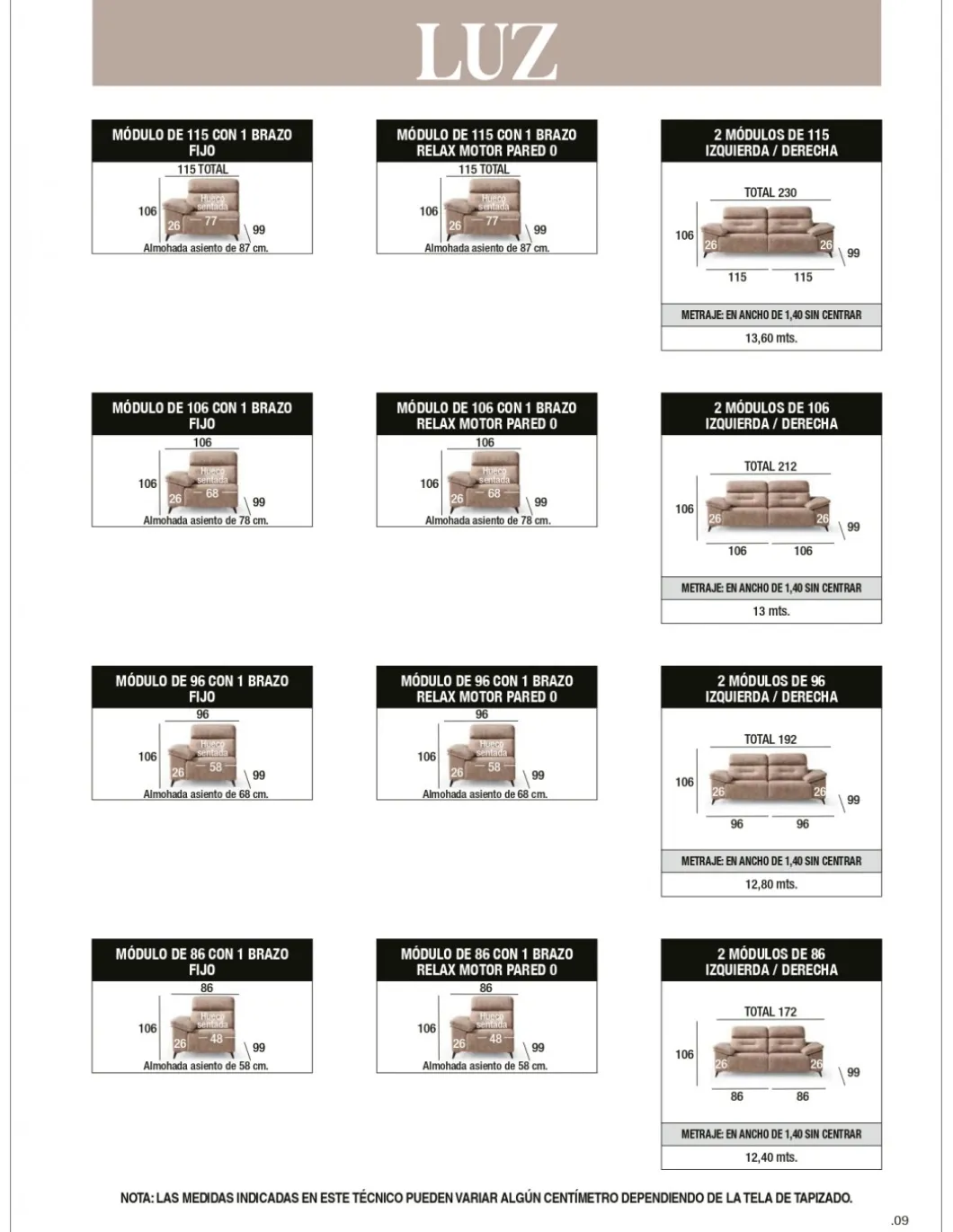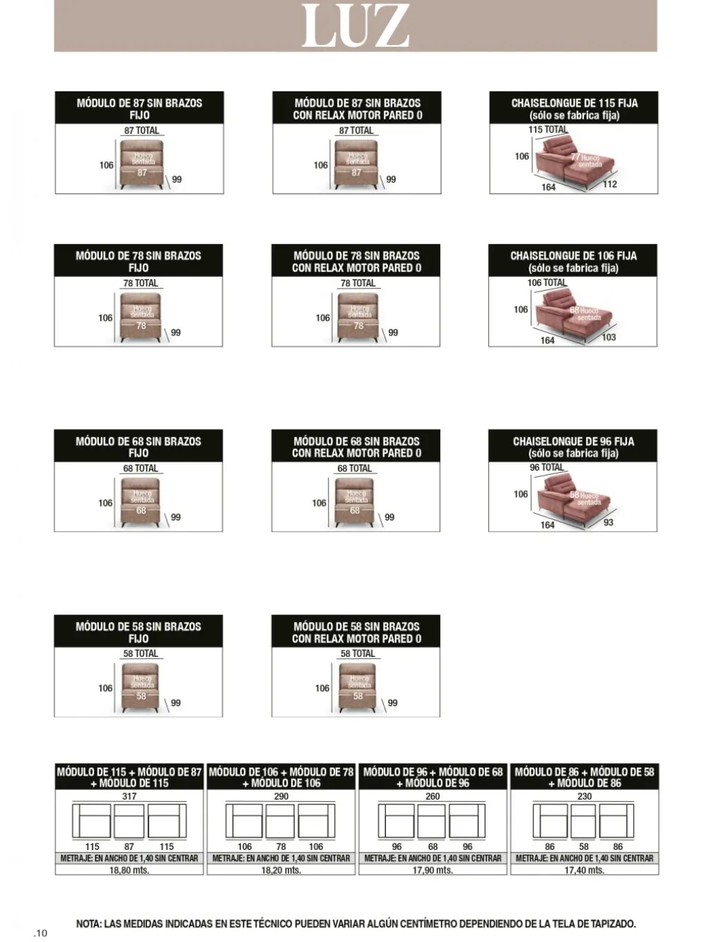 Medida 3,17m o 2,90m con 2 asientos relax con motores y chaiselonge en la serie promoción.
