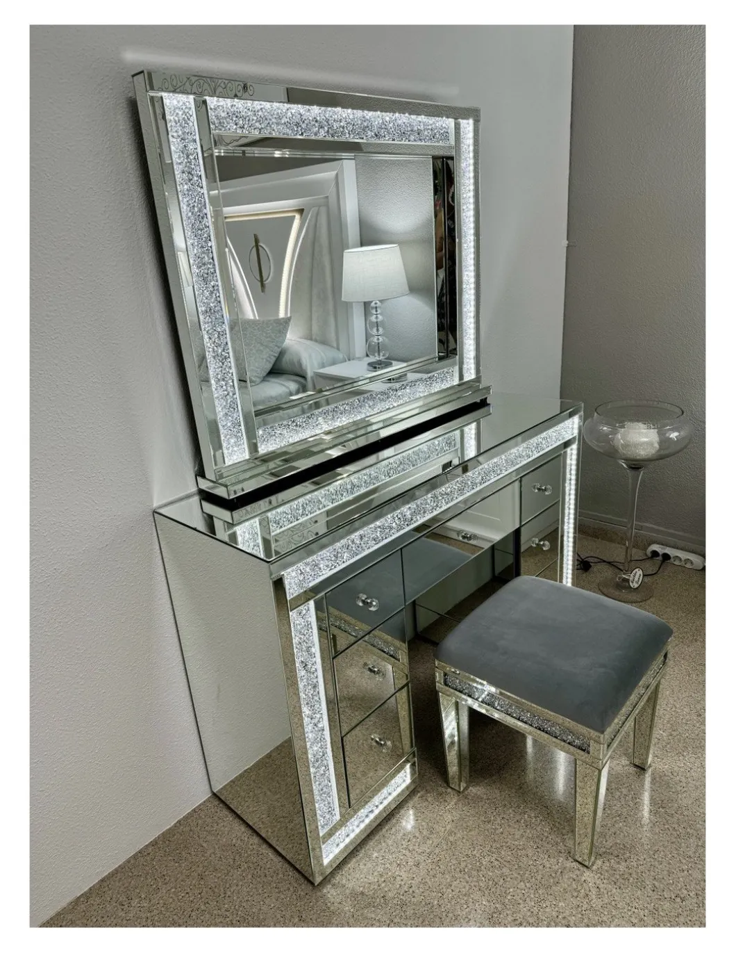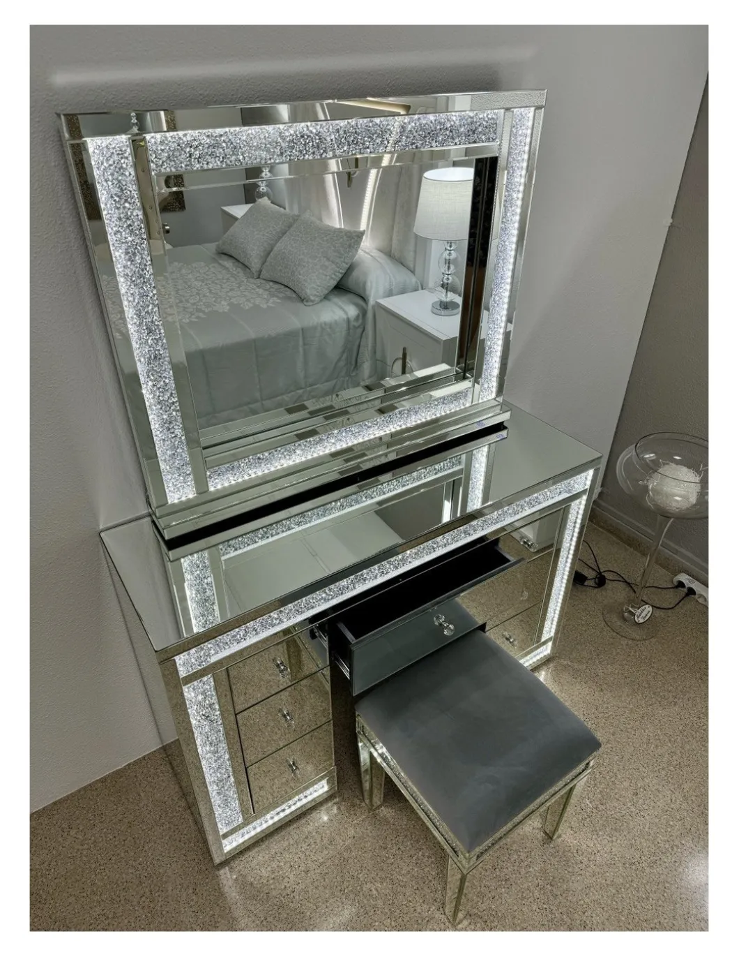 CONJUNTO TOCADOR EN CRISTAL ESPEJO CON LUZ LED.