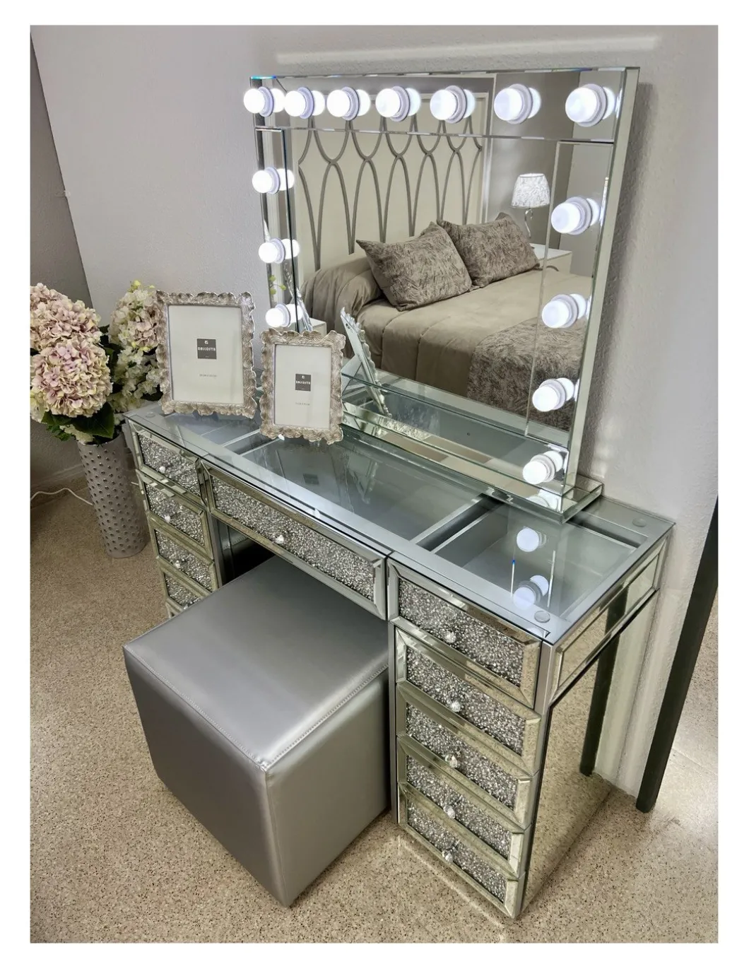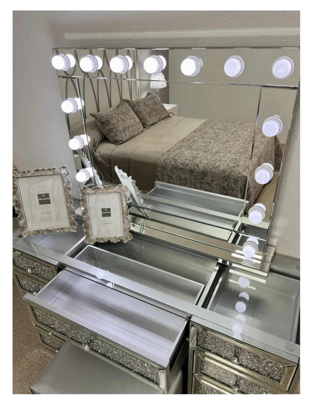 Conjunto TOCADOR Y ESPEJO, acabado en cristal espejo, medida 130 * 45