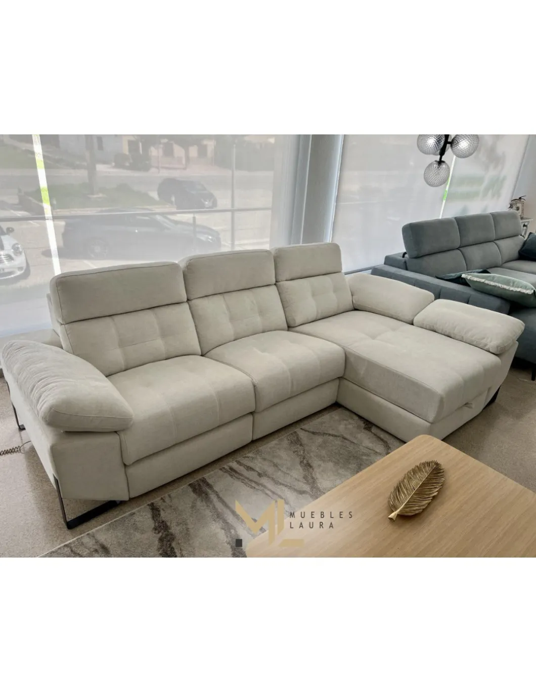 Sofá Chaislongue en medida de 3.00m , 2 asiento relax eléctricos con cabezal recrinable.